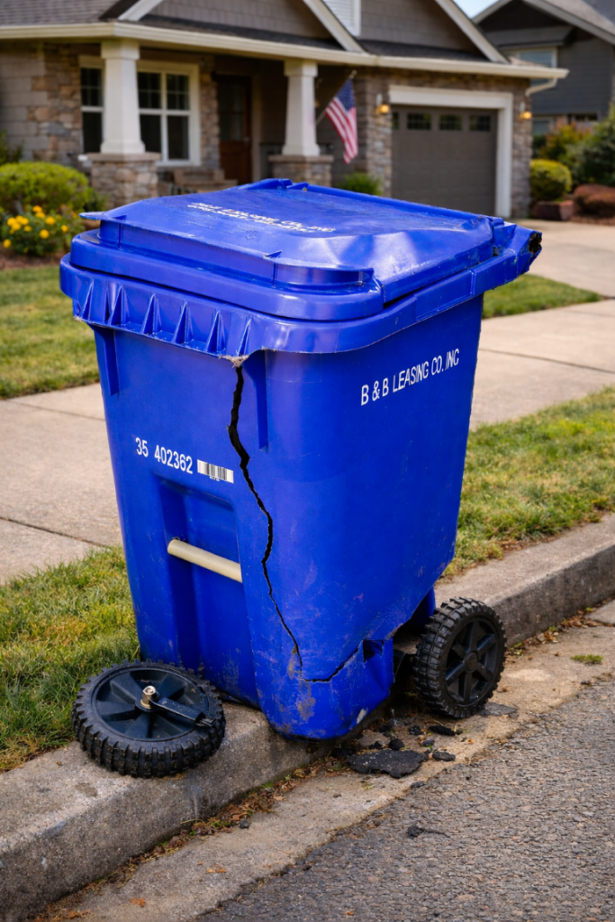 Need to replace a damaged roll cart or bin? Fill out the form below and tell us what’s wrong with your cart (cracked lid, broken wheels, missing handle, etc.). Our team will verify your information and arrange for a replacement cart to be delivered or swapped out for you.